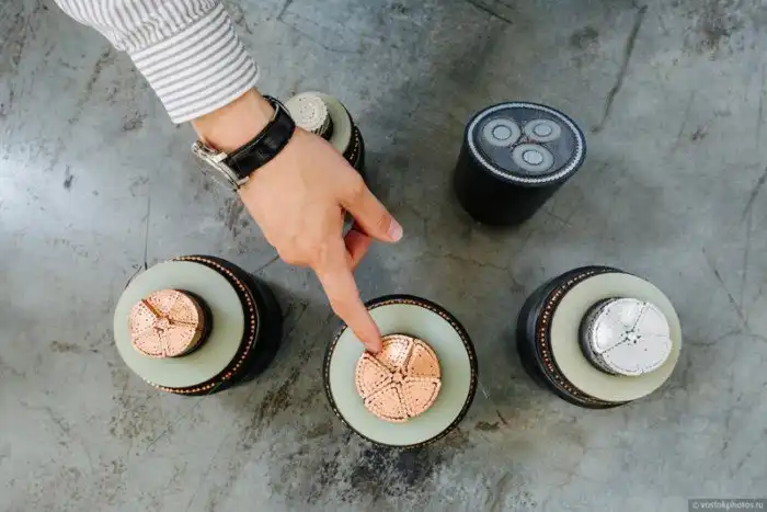 Образцы готовой продукции, а также опытно-конструкторские разработки завода «ТАТКАБЕЛЬ». Здесь производится продукция на весь спектр энергетического назначения: кабели на высокое и сверхвысокое напряжения 110–500 кВ и сечением жилы до 2500 мм2, кабели на среднее напряжение с изоляцией из сшитого полиэтилена 6–35 кВ, и кабели для стационарной прокладки напряжением от 0,66 до 3 кВ.