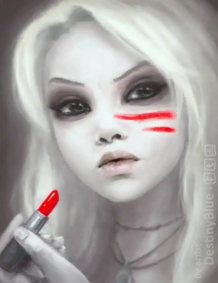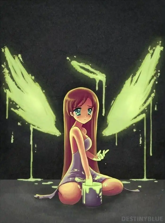 На первый взгляд искусство DestinyBlue может поразить вас только красочными, несколько меланхоличными портретами в стиле аниме. Однако, если вы присмотритесь, заметите скрытые сообщения, рассказывающие о мучительной борьбе британской художницы с депрессией. Элис Де Сте Круа публикует свои работы под псевдонимом DestinyBlue на DeviantArt с 2004 года. Яркие персонажи, которые рисует воображение, и эмоциональные истории принесли девушке популярность.