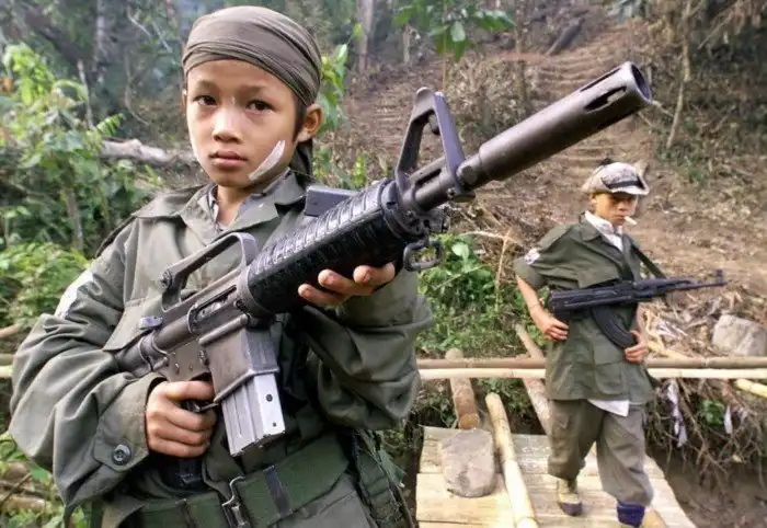 Мьянма — одно из самых закрытых государств Юго-Восточной Азии, да и мира в целом. Малолетних солдат и боевиков вербуют, прежде всего, в беднейших крестьянских семьях и многие из детей бедняков не против отправиться на службу в армию или в повстанческий отряд, так как это дает и определенный статус «человека с ружьем», и ежедневное гарантированное пропитание, и даже какие-никакие денежные средства.