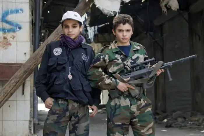 Сирийские дети активно используются в качестве посыльных, шпионов, солдат и в производстве вооружения, причем часто с использованием станков и сложного промышленного оборудования на захваченных боевиками заводах.