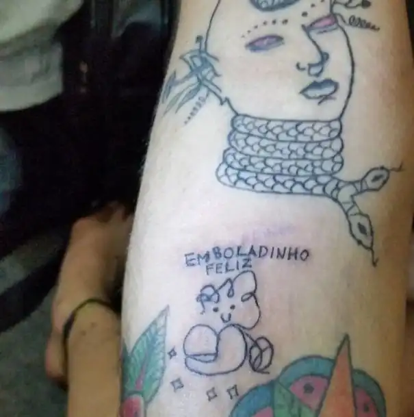 Вам наскучили однообразные эскизы татуировок? Желаете набить нечто оригинальное и неповторимое? Тогда вам прямая дорога к Элене Фернандес, она уж точно украсит ваше тело уродливым и корявым рисунком. 26-летняя бразильская художница недавно открыла тату-салон "Malfeitona", а свои работы описывает как "tatuagens peba", что в переводе с португальского означает "отстойные татуировки". Девушке не только удалось прославиться, у нее еще и отбоя от клиентов нет.