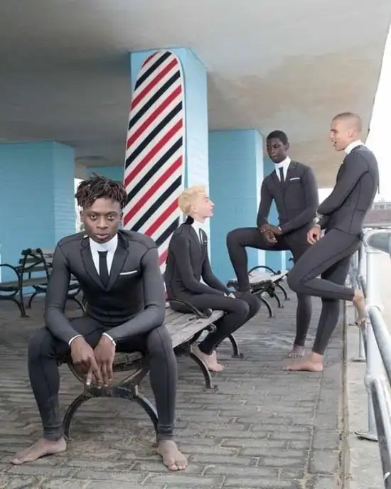 Модельер Том Браун создал самый элегантный мужской гидрокостюм для серфинга, который позволит быть одетым с иголочки не только на суше, но и в воде. Гидрокостюм выглядит как модный классический костюм, при этом он сохранил все свои качества и остался таким же удобным. На официальном сайте бренда Thom Browne указана стоимость в 3900 долларов, что делает этот костюм доступным далеко не для всех серфингистов, зато смотрится он просто шикарно и отлично подойдет для свидания с русалочкой)