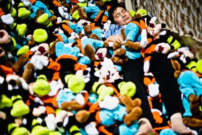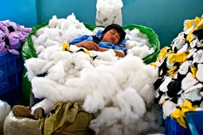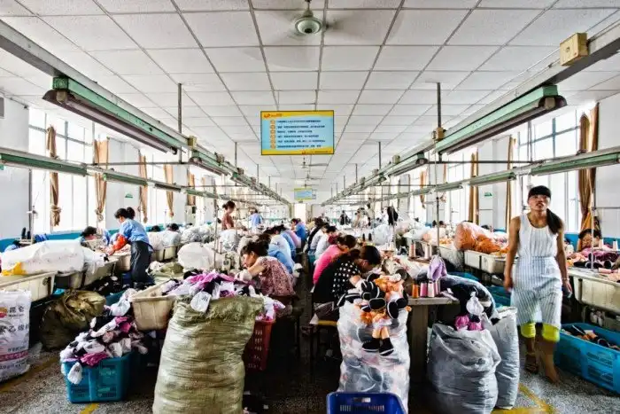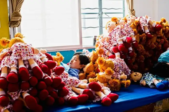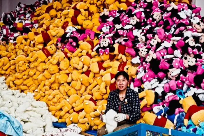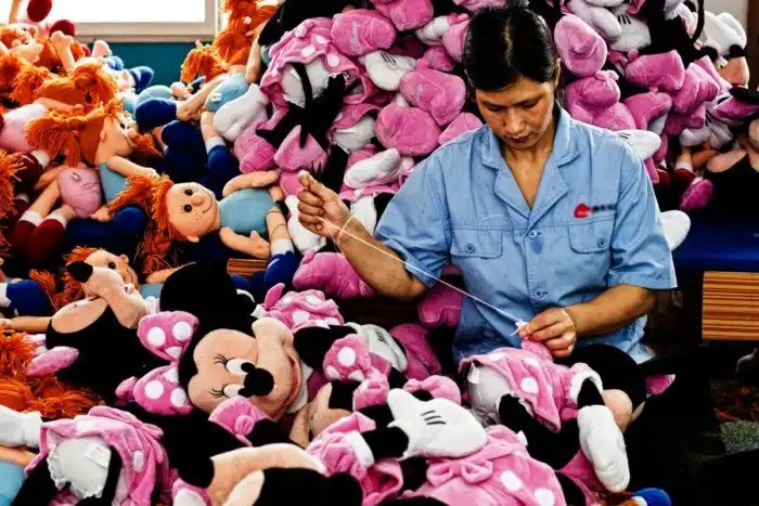 Внутри фабрики игрушек в провинции Цзянсу она увидела, как рабочие создают игрушки.
