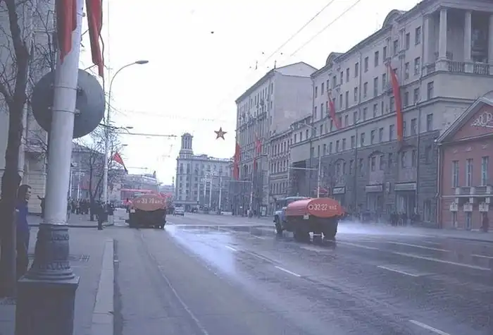 Предлагаем вашему вниманию взглянуть на интересные цветные фотографии Москвы, сделанные 30 апреля и 1 мая 1982 года. Снимки были сделаны любопытным иностранным туристом, который хотел воочию увидеть подготовку и празднование Дня международной солидарности трудящихся в стране трудового народа, где данный праздник был одним из самых главных в году.