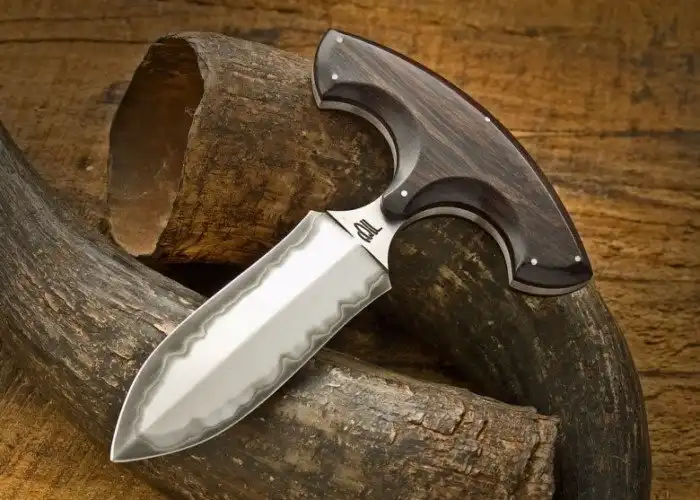 Этот кинжал с коротким клинком Т-образной формы был создан для ближних боев и внезапных атак. Тычковый нож берут в руку так, чтобы клинок высовывался из кулака между указательным и средним пальцами. Существует похожая на него конструкция меча, который больше подходит для долгих боев, чем для стремительных нападений. Тычковый нож все еще используется в разных уголках мира для самозащиты, но это очень древний вид оружия.