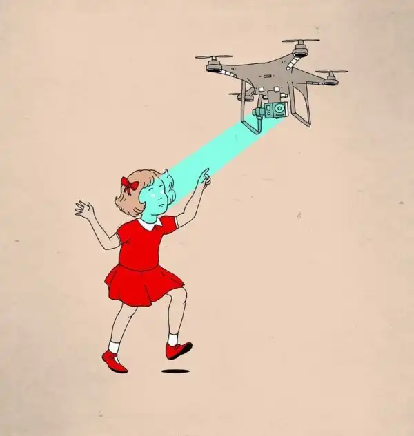 Британский иллюстратор Кристиан Джонс в своих работах изобразил детей, увлеченных современными технологиями. Смартфоны, дроны, прочие устройства и виртуальная реальность в руках подрастающего поколения стали главными персонажами в интересной серии сатирических картинок.