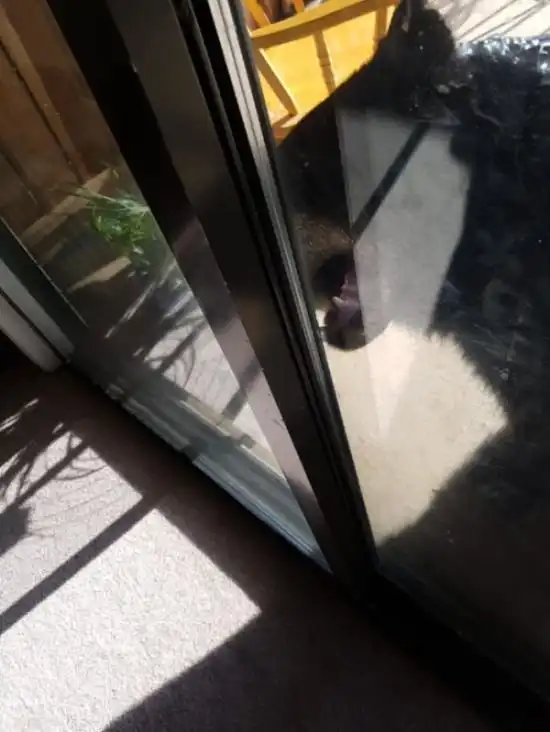 Эти фото сделали жители города Гибсон, провинция Британская Колумбия, Канада, в дом которых попытался проникнуть медведь. Животному удалось пройти в дом после чего он был замечен хозяйкой и ее детьми, которые поспешили спрятаться в спальне. В доме также оказался друг семьи, который пытался прогнать черного медведя криками и громкими звуками, однако это у него не получалось. Пойдя на рискованный шаг, мужчина ударил животное по носу, медведь начал пятиться назад, после чего перед ним закрыли дверь. Тем не менее, хищник остался у дверей и предпринимал попытки проникнуть в дом и гараж, а для того чтобы его окончательно прогнать пришлось вызвать полицейских.