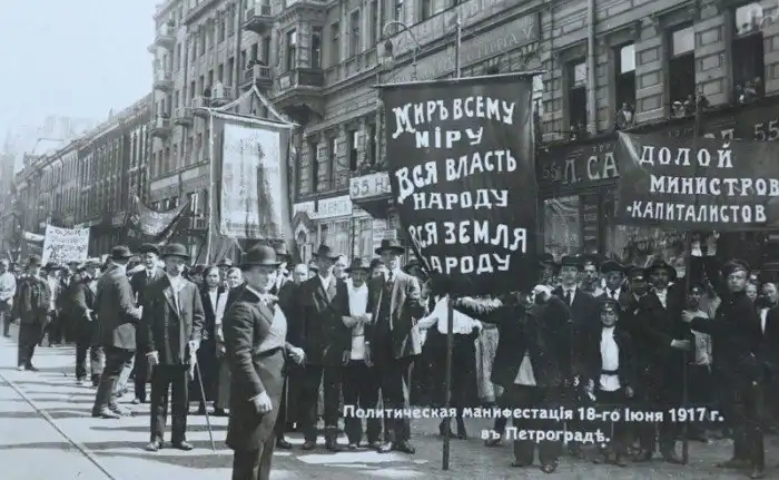 Демонстрация большевиков на Невском проспекте в Петрограде. Июнь 1917 года.