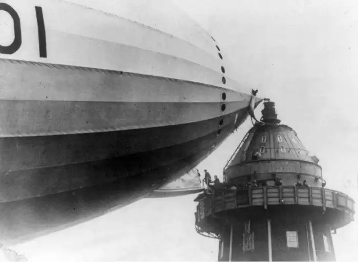 Посадка пассажиров на дирижабль с причальной мачты. Начало 1930-х годов.