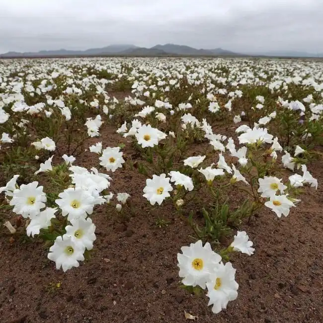 Пустыня Атакама на севере Чили покрылась тысячами цветов после прошедших здесь аномальных ливневых дождей. Это место считалось одним из самых засушливых на земле, осадки здесь выпадали крайне редко, а потому пустыня долгое время оставалась безжизненной. В этом году пустыня расцвела и здесь насчитали более 200 видов цветущей фауны, что сразу же привлекло туристов.