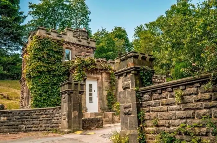 В Западном Йоркшире в самом центре Пеннинских гор продается небольшой одноэтажный замок. Дом с необычным дизайном находится в 5-ти минутах ходьбы от замка Dobroyd Castle, который построил архитектор Джон Гибсон (John Gibson) по заказу промышленника Джона Филдена младшего (John Fielden). Строительство основного замка велось с 1866 по 1869 годы, а второй домик появился позже. Теперь минизамок может стать вашим за 275 000 фунтов стерлингов (355 000 долларов США).