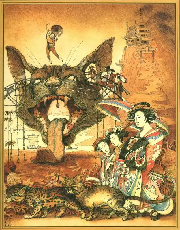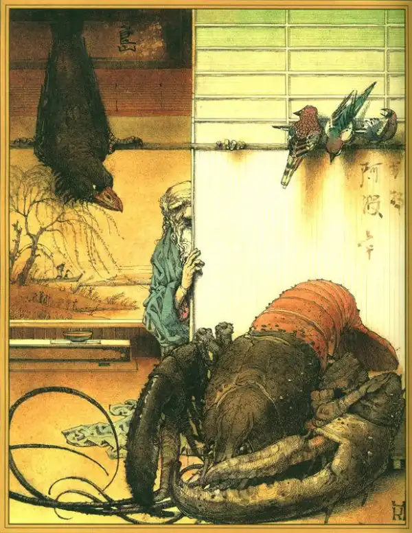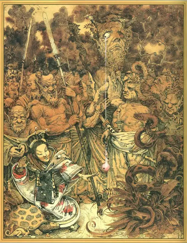 Как-то мне купила мама детскую книжку, в которой были просто народные сказки Японии. Сказки были очень даже ничего, но иллюстрации я до сих пор вспоминаю с дрожью в теле