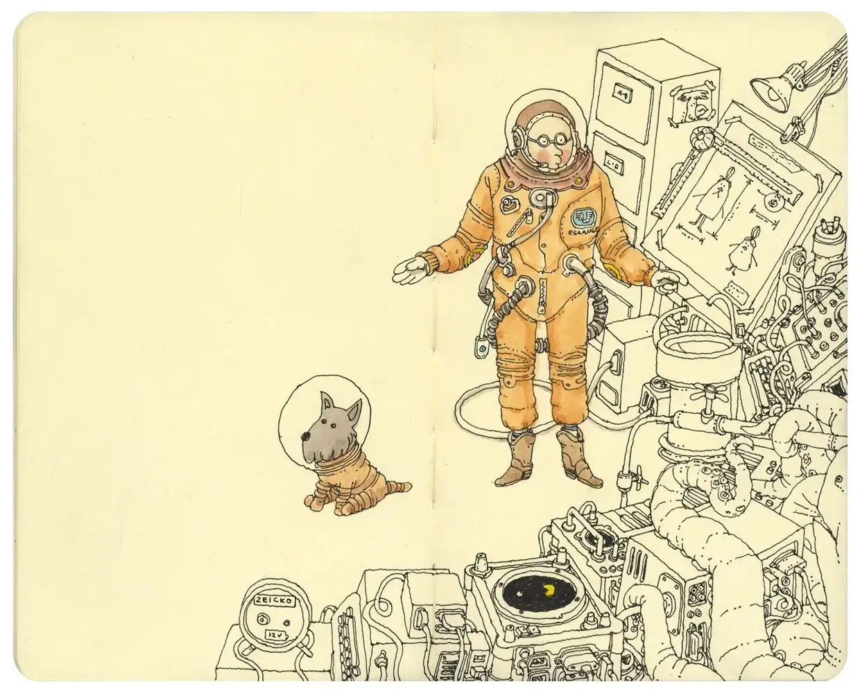 «Все иллюстрации я создаю с помощью ручки и акварельных красок. Я много лет работал с 3D-графикой, пока она мне не надоела. Для работы мне нужно вдохновение, но, как ни странно, я не ищу его в изобразительном искусстве, а куда больше нахожу в музыке.