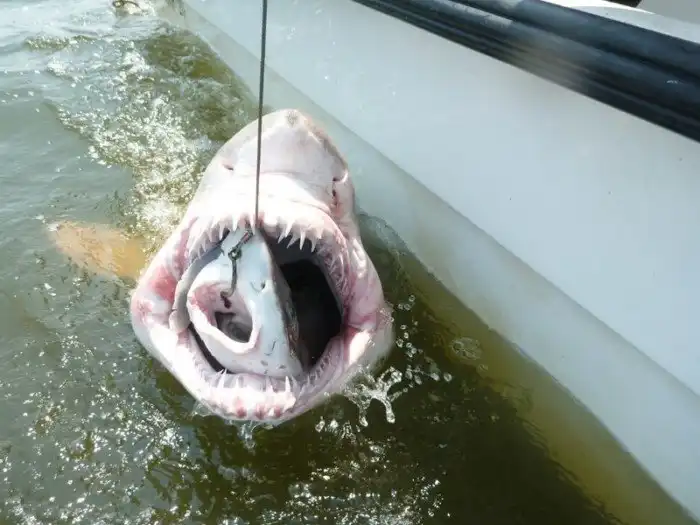 В июле 2013 года исследователи университета Делавэр опубликовали в фейсбуке вот эту фотографию "акулы внутри акулы". Они занимались тем, что бросали ранее помеченным акулам мелкую рыбу-приманку, чтобы поймать их и записать некую важную информацию, собранную за это время. Конечно, никто не ожидал, что внутри пойманной крупной акулы окажется маленькая неудачница акула-катран, которая клюнула на чужую наживку и сама в итоге стала жертвой.