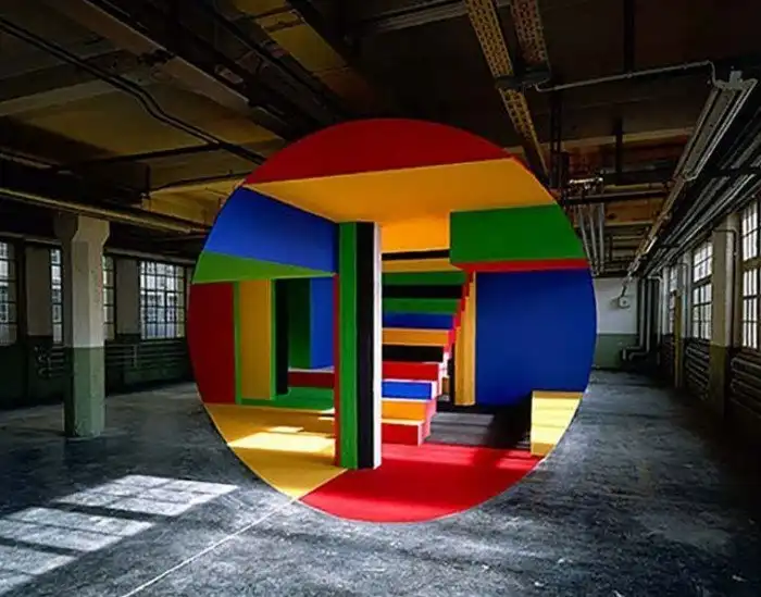 Французского художника и фотографа Жоржа Русса называют крестным отцом инсталляций "единой перспективы" - созданную им картину в ее первоначальной задумке можно увидеть только с определенной точки. Вначале художнику приходится серьезно поработать над местом съемки, учитывая угол падения света, неровности поверхности и т.д. Но все это сделано руками художника, никакого фотошопа.