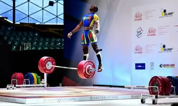 Очень вовремя сделанный снимок колумбийского тяжеловеса Лесмана Паредеса. Фотограф запечатлел успешную попытку спортсмена взять 190 кг.