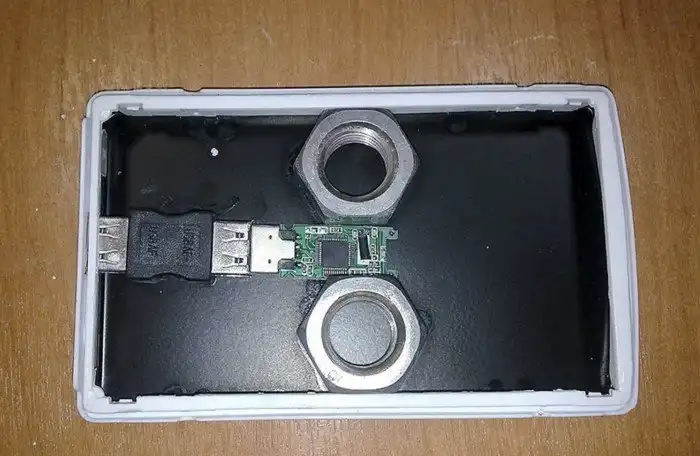 Классика - жёсткий диск. Флешку засунули в корпус и напихали утяжелителя.