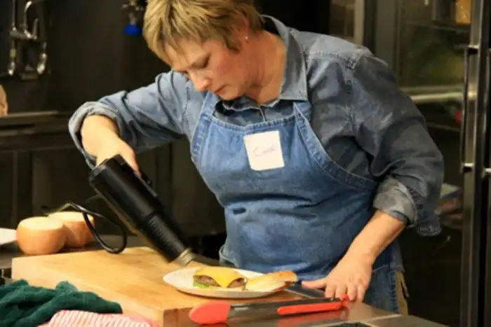Сыр в гамбургерах всегда выглядит идеально благодаря правильной температуре нагрева. Нужно продемонстрировать слегка подплавленный сыр, который еще не успел превратиться в бесформенную массу. Поэтому используют фен для волос.