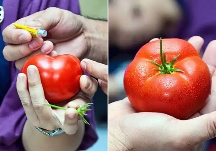 Красивейшие томаты с идеальным хвостиком выглядят аппетитно, если бы их не красили и не лепили им этот хвостик на клей.