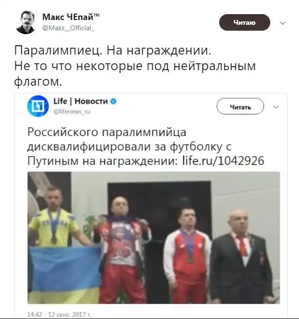 паралимпиец знатный троль, а ты идиот, у которого и есть этот путинизм мозга