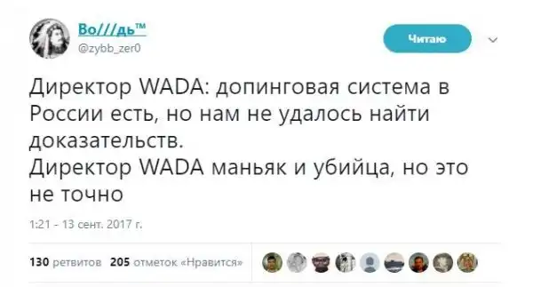 В свете того, что ВАДА включила заднюю, я бы, наверное, тоже сделал это назло!