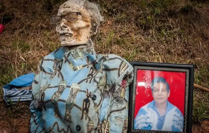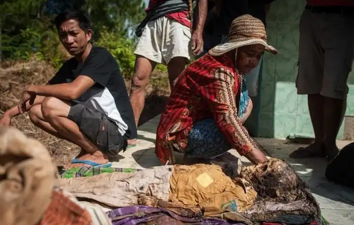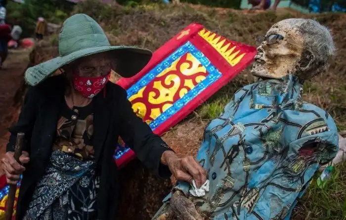Представители племени тораджан продолжают общаться с умершими родными и после смерти. Часто трупы покойных родственников в течение месяцев, а иногда и лет хранят дома. Чтобы они не сгнили, их как следует пропитывают формальдегидом.