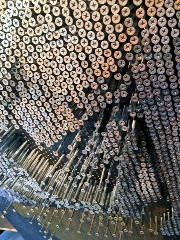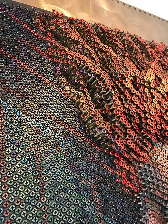 Наполовину живопись, наполовину скульптура, микс баланса и хаоса. 20 тысяч саморезов и шурупов, закрепленных на сосновой доске на разной глубине для создания 3D-эффекта. Художник Брюс Макли потратил сотни часов на создание своих произведений искусства, и результат достоин восхищения. Оцените сами!