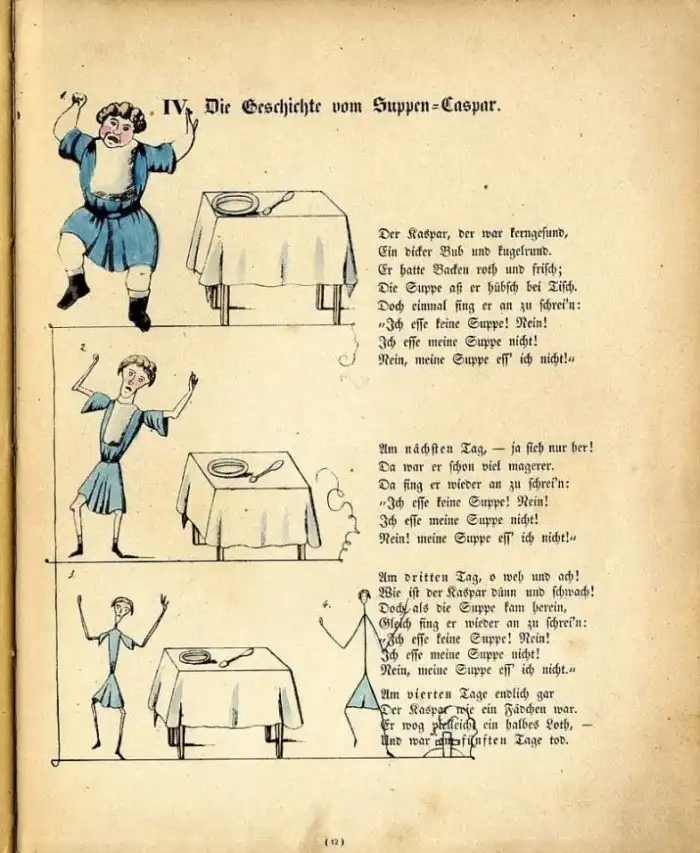 История о Каспаре, который отличался здоровым аппетитом, а потом вдруг начал отказываться от супа - и на пятый день зачах и умер