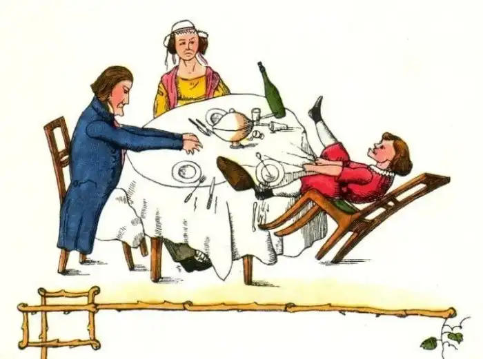 Несомненно прекрасна история о мальчике Конраде, который не слушал маму и любил сосать палец. Мама позвала портного и тот отрезал Конраду два больших пальца