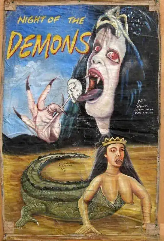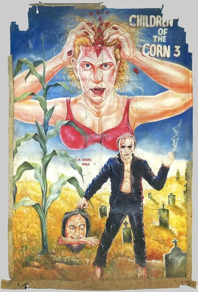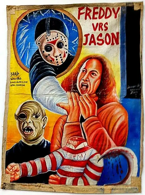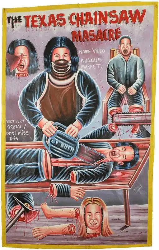 Хотя с первого взгляда и сложно понять, что же на них изображено, эти постеры на удивление занимательны. Нарисованные масляной краской на распоротых мешках из-под муки – единственного материала, доступного их создателям, – они рекламируют голливудские «ужастики» и боевики, индийское кино, снятые в Гонконге фильмы о боевых единоборствах, а иногда и довольно странные (по американским меркам) ленты из Нигерии и Ганы. Честно говоря, по моему мнению, эти афиши интересны даже больше, чем сами фильмы.