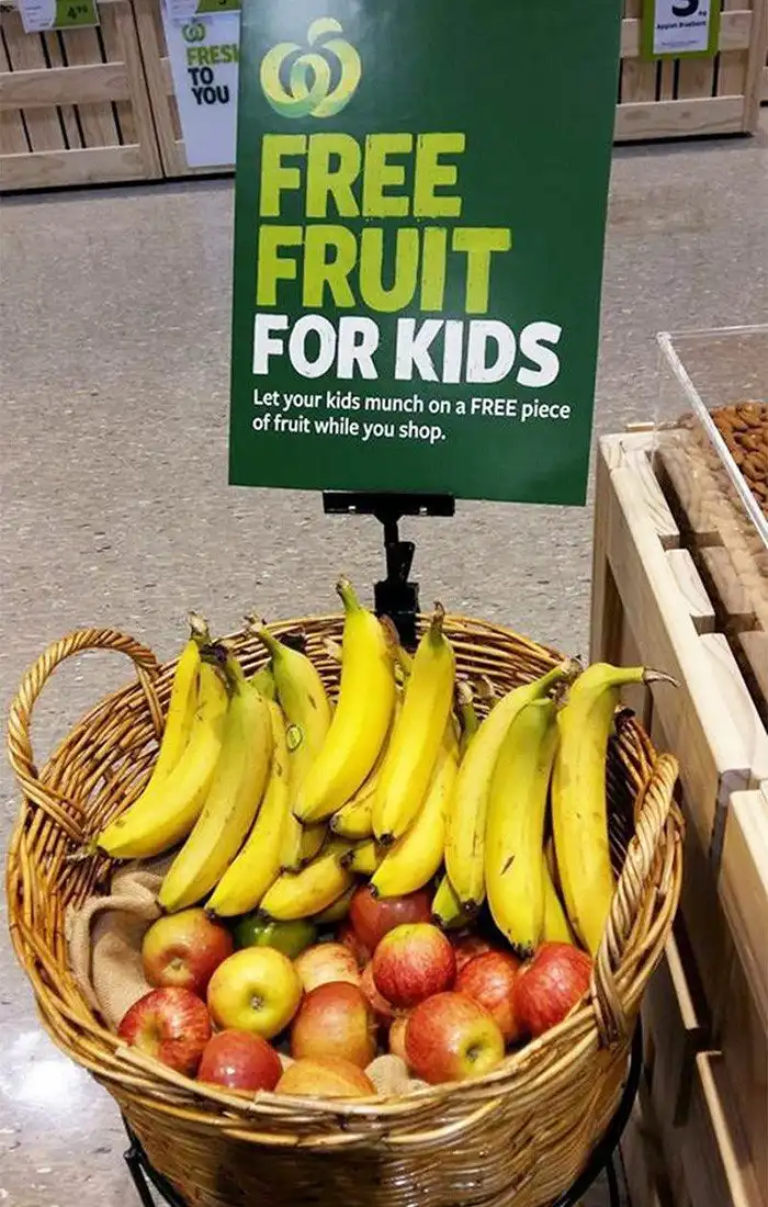 10. Магазин предлагает детям бесплатно угоститься фруктами, пока их родители выбирают продукты