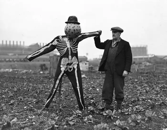 22. Фермер и его гениальная идея нарядить пугало скелетом, 1937 г.