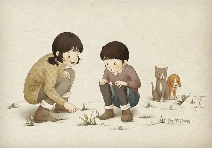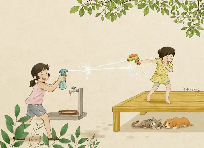 Корейская художница под псевдонимом Paper fly рисует воспоминания из своего детства. В работах она делится частичкой души и "рассказывает" теплую историю о жизни со своей сестрой, в которой кто-то узнает и себя.