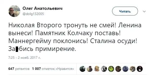 ....И мне вообще очень жаль, что СССР развалили, а теперь ещё и братьев славян ссорят по всякой ерунде. Но нормальные люди НИКОГДА не предадут (продадут) свою страну. А смотреть на проделки зомбированных нелюдей и взваливать вину всему народу, проживающему в этой стране - это значит быть таким же зомбированным как и вся серая (безликая) толпа - что один закричит, то и остальные подхватят...