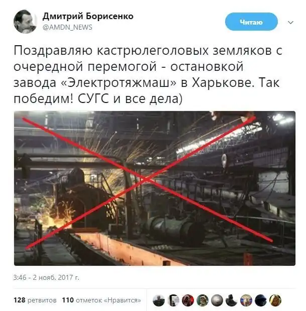 Женщина на это ему ответила, что признает только один язык — русский, и вообще ждет российских танков в Украине. На эту фразу военный бросил в кассиршу десяток яиц, после чего в магазине вызвали полицию. Федорчук добавил: В«История на сегодня. Товарищ, который относительно недавно демобилизовался из рядов ВСУ, Донецка, решил зайти в один из харьковских АТБ за продуктами. Пришел в кассу и спросил спокойно у кассирши, умеет ли она обслуживать на украинском языке. Спокойно спрашивает, на русском, между прочим. Кассирша начала рассказывать, что она признает один государственный язык — русский, ждет российские танки, которые скоро приедут и отпадет всякая необходимость в украинском. Потому Харьков — это же Россия, если кто не в курсе. Результат: кассирша оздоровлена десятком яиц, полиция на место событий выехала. Продолжение следуетВ».