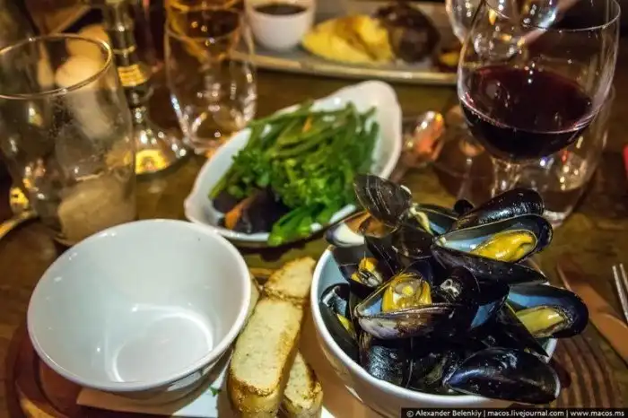 Кормят здесь недурно. Покажу вам свой ужин: филе миньон с картофельным пюре с беконом и свежие мидии с чесночными гренками.