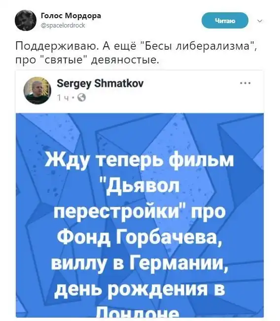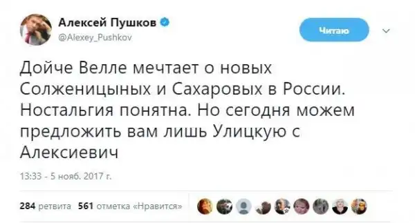 Да пёс с ним с Навальным, я его привёл как один из примеров, были и Парнас, и СПС и Яблоко. И основным ответом кремля им было - а вас госдеп печеньками заряжает, и этого было достаточно, что бы народ сделал фу. Либерал-революционеры говорили власти ты воруешь, а власть говорила - а вы у американского посольства шакалите. Вот Ленин у кайзера пошакалил, и супермегадержава возникла, чего ж либералов то боитесь?