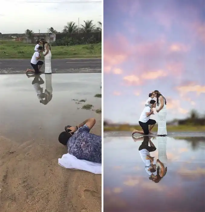 Бразильский фотограф Гилмар Силва (Gilmar Silva), который специализируется на свадебных и семейных фотосессиях, знает, как сделать удивительные фото, которые соберут множество лайков на страницах его клиентов в соцсетях. Как и любой другой профессионал, Гилмар использует в своей работе фотошоп, различные хитрости и смекалку, о которых он не стесняется говорить открыто. Чтобы рассказать о том, как были сделаны некоторые фото, Гилмар запустил проект LUGARxPHOTO ("место и фото"), в котором он рассказывает о некоторых своих хитростях.