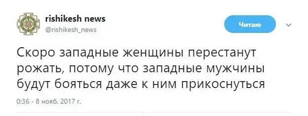 К западным женщинам уже боятся прикоснуться западные мужчины. Даже посмотреть на них боятся. Одни только эмигранты еще не усвоили это правило, потому и рожают.. hi