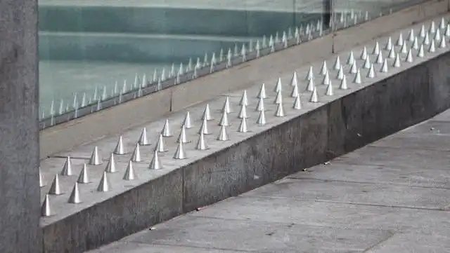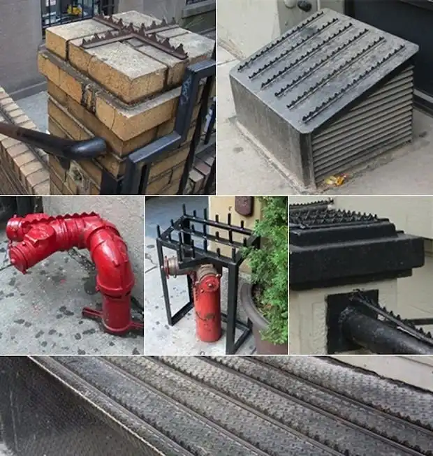 В современной городской архитектуре можно выделить отдельное направление Defensive urban architecture, которое позволяет защитить общественное пространство от использования не по назначению. Это направление, которое также известно как unpleasant design или hostile architecture, является своего рода защитой от вандализма, кроме того оно может служить защитой от животных, бездомных или скейтбордеров. Давайте взглянем на фото, чтобы понять, как выглядит подобная защита.
