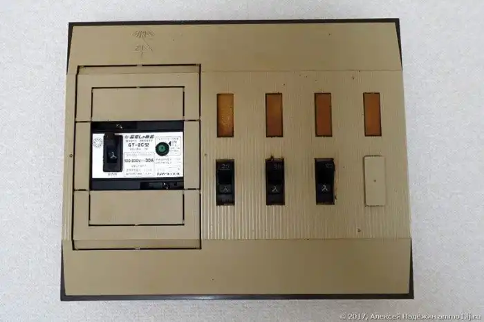 Напряжение в сети отличается от всех - 100 Вольт 50 Герц (в Америке с такими же вилками 110 В 60 Гц, у нас и в Европе 230 В 50 Гц). Из-за такого низкого напряжения и электроприборы меньшей мощности, например чайник, которым я пользуюсь, имеет мощность всего 900 Вт (дома у меня чайник 3000 Вт). Но, самое удивительное, что во многих квартирах сразу два напряжения - 100 вольт и 200 вольт, поэтому и электросчётчиков два.