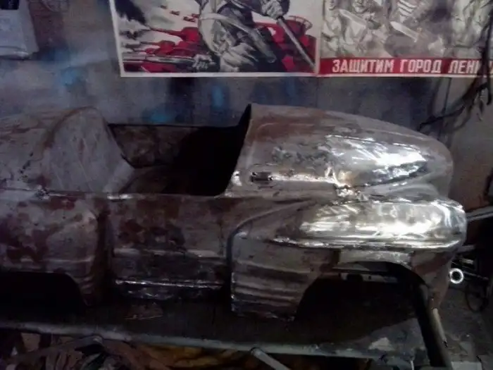 Для полного соблюдения всех размеров был изготовлен деревянный каркас. После этого кузов методично варился, выравнивался, рихтовался и снова выравнивалс