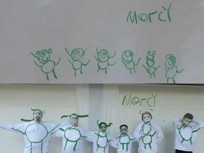 Greatest International Scavenger Hunt the World Has Ever Seen (GISHWHES) - умопомрачительный проект Миши Коллинза, дословно переводимый как "Величайшая Международная Охота на Мусор". Каждый год участники получают особое задание, а победитель - достойный приз. На этот раз Миша предложил родителями воссоздать семейный портрет, нарисованный 6-летним ребенком. Вот что из этого получилось.