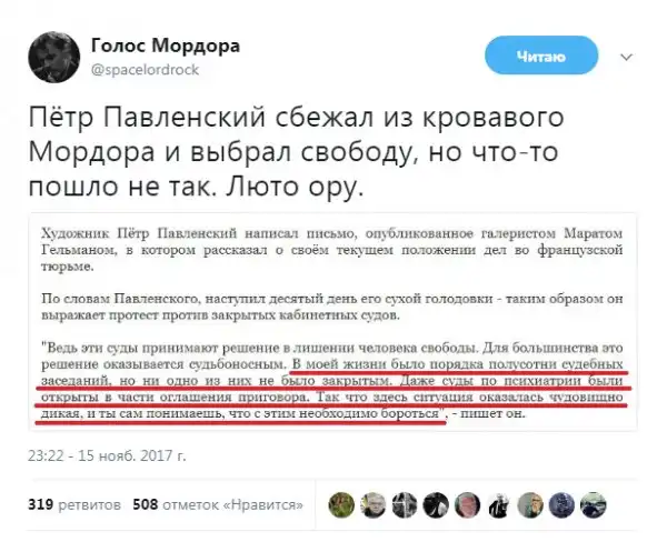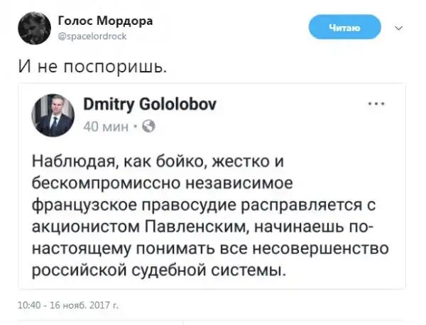 Интересно как бы Жорик запел, если бы его к стенке поставили, объяснив, что он жертва во имя светлого будущего. Не исключено, что обгадился бы, да только не от радости.