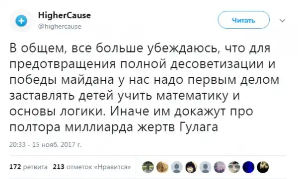 То что в головах нет понимания празднования даты освобождения от иноземных захватчиков, а есть празднование даты начала братоубийственной войны, это признак или плохого знания истории, или идеологического зомбирования...