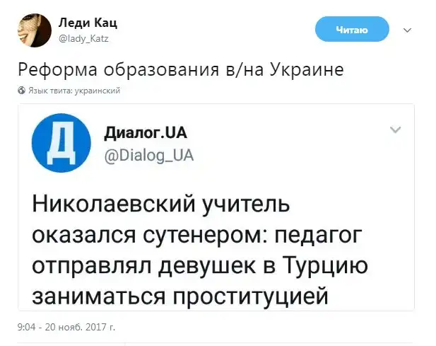Сын учительницы истории Эллы Яворской из гимназии в Новом Уренгое Анатолий Яворский, ныне живущий в Киеве, и... его друзья... под Авдеевкой в составе укровермахта. Есть еще вопросы какую историю там преподает эта мадам?