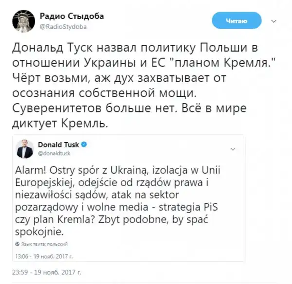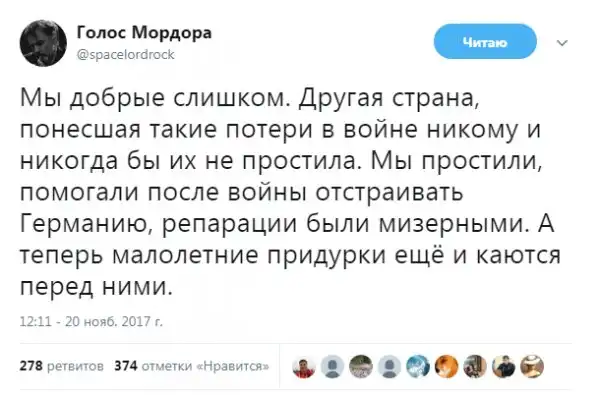 Ну, и вспомним фамилию школьника - Десятниченко. Какие же могут быть выводы? В молодые годы случалось мне немного поработать на российском Севере, на нефтедобыче. Тамошние места шутливо назывались Татаро-хохлятским автономным округом. Всё потому, что там, , своей массе, традиционно работали люди из Татарии и Башкирии, всем известными своими нефтяными месторождениям, которые разрабатывались в советское время. Плюс ко всему, была большая примесь хохлов. Какими путями они там оказывались мне не известно, но хохлогастеров там было много. Теперь, когда отношения между Россией и 404 накалены до предела, вся северная хохлобратия активизировалась в нашем тылу. В нашем стратегическом тылу. Активизировалась и, по своему обыкновению, гадит. Ещё раз скажу, никак не хотел писать об этом, потому что казалось, что мои подозрения по поводу этноса казались притянутыми, но против фактов не попрёшь - везде в этой говёной истории фигурируют хохлы с друзьями-карателями с Донбасса и, возможно, мы имеем дело с хохлятской пробандеровской диаспорой, если таковая гласно и негласно существует. Ну, и напоследок... 17 ноября - юбилей операции "Уран". В 1942 году, 75 лет назад, началось контрнаступление Красной Армии, которое ознаменовало собой освобождение Сталинграда от немецко-фашистских захватчиков. Выступление этого Плохиша было подготовлено аккурат под эту дату, которое было проспонсировано "Газпромом". И как Плохиш мог попасть на выступление в Бундестаг? Всё кажется таким неожиданным, да? Ничего подобного. Вчера как раз вышла публикация о том, как наши ылиты сливают Путина, напрямую угрожая его жизни. Многим кажется это нереальным. Как так?! А вот так!