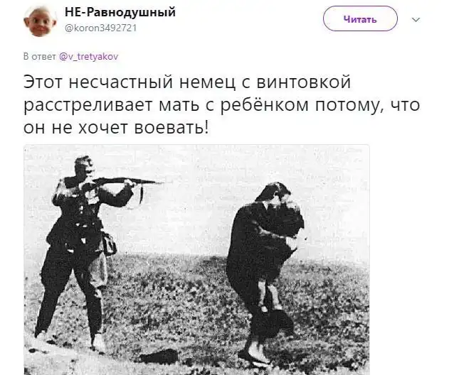 А что по сути? А посути аукнулись те крайности, в которые мы впадаем в последнее время. С одной стороны Победа возводится в статус религии. С другой стороны на неё льются помои. Трезво оценивать события тех времен , особенно публично, стало опасно. А вдруг скажешь что-то не то... Нет, конечно, "безвинно убитые военнопленные" это бред. И наличие этой фразы делает таковым весь доклад, даже если бы он был произнесен без усечения. Наличие такой фразы объясняется просто - лично для Коли эта война ничего значит. Рассказы деда, литература, фильмы и уроки истории в школе. Но плохо это, или хорошо? Это нормально. Это нормально, когда говорить о такой войне невозможно пока не сменится поколение, которое её видело. Её можно только переживать. А вот поколение Коли уже должно трезво оценить что же тогда произвошло. Были немецкие солдаты, которые не являлись нацистами и которым пришлось идти на фронт? Да были. Погибали они в плену? Естественно. Было ли это нормально? Да, вполне. Как везде. Можно считать их невинными? Вряд ли. Без истерик и кампаний в соцсетях и прочих интернетах.