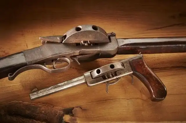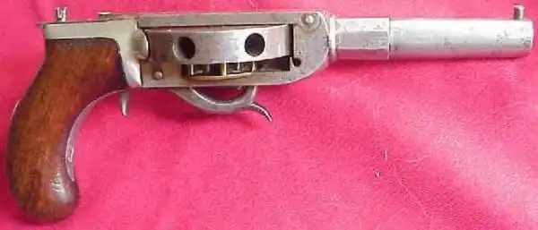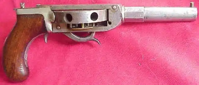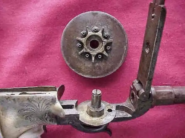 В XIX столетии было изобретено большое количество оригинальных конструкций огнестрельного оружия, и одним из таких видов оружия были пистолеты и винтовки Джона Вебстера Кохрэйна (John Webster Cochran). Изобретатель предложил отказаться от револьверного барабана в пользу диска, который устанавливался горизонтально. Первый патент был получен им в 1828 году, в 1834 году патент дополнили и началось серийное производство оружия. Особой популярностью такое оружие не пользовалось, например, винтовок было заказано всего 200 штук, однако сохранившиеся экземпляры представляют чрезвычайно оригинальный образец конструкторской мысли.