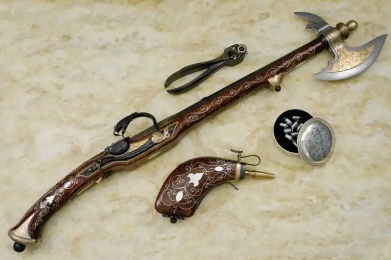 Комбинированное оружие стали изготавливать еще в конце 16 века, поскольку вплоть до середины 19 века многозарядного огнестрельного оружия не было, и пистолет был фактически бесполезен в ближнем бою после совершения первого выстрела - перезарядка была трудоемким и долгим процессом. Перед вами именно такие примеры удивительного симбиоза огнестрельного и холодного оружия прошлых веков.